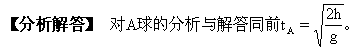 [错解] 对B球,可视为单摆,延用单摆周期公式可求B球到达O点的时间: