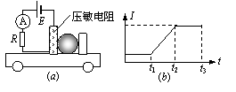 压敏电阻的阻值随所受压力的增大而减小,有位同学利用压敏电阻设计了判断小车运动状态的装置,其工作原理如图(a)所示.将压敏电阻和一块挡板固定在绝缘小车上,中间放置一个绝缘重球.小车向右做直线运动过程中,电流表示数如图(b)所示.下列判断正确的是
