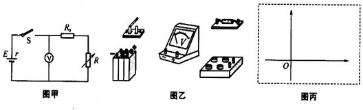 现有一电池,其电动势E约为9V,内阻r在35~55Ω范围内,最大允许电流为50 mA。为测定这个电池的电动势和内阻,某同学利用如图甲所示的电路进行实验。图中电压表的内电阻很大,对电路的影响可以不计;R为电阻箱,阻值范围为0~9 999Ω;R0为保护电阻。