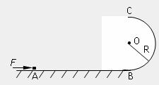 (2)当WF最小时,物块刚好能够通过C点,此时mvC2/R=/mg (2分)