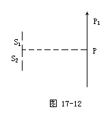 6.图17-12是双缝干涉实验装置,使用波长为600nm的橙色光照射,在光屏中心P点呈现亮条纹.在P点上方的P1点到S1、S2的路程差恰为λ,现改用波长为400nm的紫色光照射,则 [ ]
