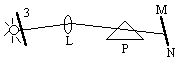4. 附图为一摄谱仪的示意图,来自光源的光经过狭缝S和透镜L后,成为平行光射在三棱镜P上. 为了在一照相底片MN上拍摄下清晰的光谱,在P与MN之间须放置一个______,黄、红、绿三种颜色光谱线在照相底片上从M端到N端的次序为_______.