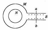 20.如图所示,在匀强磁场B中放一电阻不计的平行金属导轨,导轨跟固定的大导体环M相连接,导轨上放一根金属导体棒ab并与导轨紧密接触,磁感线垂直于导轨所在平面。若导体棒匀速地向右做切割磁感线的运动,则在此过程中M所包围的固定闭合导体环N内