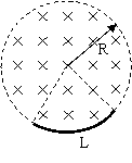 均匀变化。长度为L的圆弧金属棒按图中形式放置,圆弧圆心与圆形磁场的中心重合。下面给出了此圆弧金属棒中产生的感应电动势的表达式,其中只有一个是合理的。