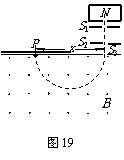 24.(昌平)(7分)如图19所示为一质谱仪的构造原理示意图,整个装置处于真空环境中,离子源N可释放出质量均为m、电荷量均为q(q>0)的离子。离子的初速度很小,可忽略不计。离子经S1、S2间电压为U的电场加速后,从狭缝S3进入磁感应强度大小为B、方向垂直于纸面向外的匀强磁场中,沿着半圆运动到照相底片上的P点处,测得P到S3的距离为x。求: