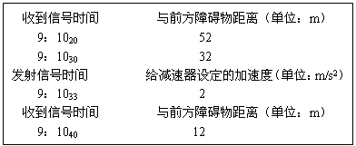 16. (14分)2004年1月25日,继“勇气”号之后,“机遇”号火星探测器再次成功登陆火星。在人类成功登陆火星之前,人类为了探测距离地球大约3.0×105km的月球,也发射了一种类似四轮小车的月球探测器。它能够在自动导航系统的控制下行走,且每隔10s向地球发射一次信号。探测器上还装着两个相同的减速器(其中一个是备用的),这种减速器可提供的最大加速度为5m/s2。某次探测器的自动导航系统出现故障,从而使探测器只能匀速前进而不再能自动避开障碍物。此时地球上的科学家必须对探测器进行人工遥控操作。下表为控制中心的显示屏的数据: