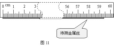 (1)待测电阻是一均匀材料制成的金属丝(横截面为圆形),用尺测量其长度,用螺旋测微器测量其直径,结果分别如图11和图12所示。