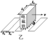 涡流制动是磁悬浮列车在高速运行时进行制动的一种方式。某研究所制成如图乙所示的车和轨道模型来定量模拟磁悬浮列车的涡流制动过程。车厢下端安装有电磁铁系统,能在长为