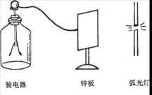 在演示光电效应的实验中,原来不带电的一块锌板与灵敏验电器相连,用弧光灯照射锌板时,验电器的指针就张开一个角度,如图所示,这时