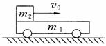21(B). 如图所示,质量m1=0.3 kg 的小车静止在光滑的水平面上,车长L=15 m,现有质量m2=0.2 kg可视为质点的物块,以水平向右的速度v0=2 m/s从左端滑上小车,最后在车面上某处与小车保持相对静止。物块与车面间的动摩擦因数