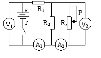 14、如图,当变阻器的滑片P滑动时,四个电表的示数变化的绝对值分别为ΔI1、ΔI2、ΔU1、ΔU2,则有( [x14] )