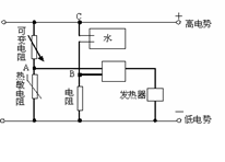 下图是热水器系统的恒温器集成电路,当温度低时,热敏电阻的阻值很大,温度高时热敏电阻的阻值就很小,只有当热水器中有水且水的温度低时,发热器才会开启并加热;反之,便会关掉发热器。如果热水器中没有水时,电路中B点处于 电势(填“高”或“低”),这个逻辑电路是
