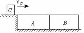 24A、两块厚度相同的木块A和B,紧靠着放在光滑的水平面上,其质量分别为mA=0.5kg,mB=0.3kg,它们的下底面光滑,上表面粗糙;另有一质量mC=0.1kg的滑块C(可视为质点),以vC=25m/s的速度恰好水平地滑到A的上表面,如图所示,由于摩擦,滑块最后停在木块B上,B和C的共同速度为3.0m/s,则木块A的最终速度vA=__________m/s,滑块C离开A时的速度vC´=__________m/s[x24] 。
