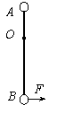 (12分)AB两个质量均为m的小球,被一轻杆AB固定,轻杆长AB=L,OA=L/3,杆可绕O点的水平轴无摩擦地转动,初始时杆静止在竖直位置,如图所示,今在B球上施加一水平方向恒力F=mg,试求: