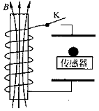 如图所示,两块水平放置的金属板距离为d,用导线、开关K与一个n匝的线圈连接,线圈置于方向竖直向上的均匀变化的磁场B中.两板间放一台小压力传感器,压力传感器上表面绝缘,在其上表面静止放置一个质量为m、电量为十q的小球.K断开时传感器上有示数,K闭合时传感器上的示数变为原来的一半.则线圈中磁场B的变化情况和磁通量变化率分别是 ( )