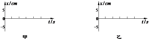 (1)甲开始观察时,振子正好在平衡位置并向下运动,经过1s后,振子第一次回到平衡位置,且振子的振幅为5cm。设平衡位置上方为正方向,时间轴上每格代表为0.5s。试画出甲观察到的弹簧振子的振动图象。(画一个周期)