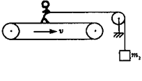 13、测定运动员体能一种装置如图所示,运动员质量为m1,绳拴在腰间沿水平方向跨过滑轮(不计滑轮质量及摩擦),下悬一质量为m2的重物,人用力蹬传送带而人的重心不动,使传送带以速率v匀速向右运动。下面是人对传送带做功的四种说法,其中正确的是( )