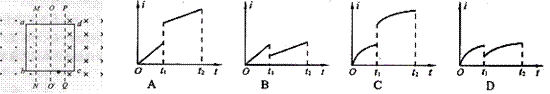 27.[江西省高安二中2011届高三第三次模拟考试]如图所示,空间存在两个磁场,磁感应强度大小均为B,方向相反且垂直纸面,MN、PQ为其边界 00’为其对称轴.一导线折成边长为L的正方形闭合线框abcd,线框在外力作用下由纸面内图示位置从静止开始向右做匀加速运动,若以逆时针方向为电流的正方向,则从线框开始运动到曲边刚进入到PQ右侧磁场的过程中,能反映线框中感应电流随时间变化规律的图像是( )