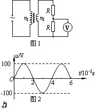 : 1。变压器的原线圈接如图2所示的正弦式电流,两个20Ω的定值电阻串联接在副线圈两端。电压表V为理想电表。则 (