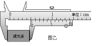 (1)由图甲中刻度尺读出两个光电门中心之间的距离s=24cm,由图乙中游标卡尺测得遮光条的宽度d= cm。该实验小组在做实验时,将滑块从图甲所示位置由静止释放,由数字计时器可以读出遮光条通过光电门1的时间Δt1,遮光条通过光电门2的时间Δt2,则滑块经过光电门1时的瞬时速度的表达式v1=