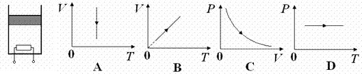 ⑴如图所示,用一绝热的活塞将一定质量的理想气体密封在绝热的气缸内(活塞与气缸壁之间无摩擦),现通过气缸内一电阻丝对气体加热,则以下图像中能正确反映气体的压强p、体积V和温度T之间关系的是 .