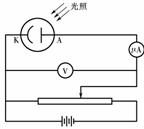管,其中A为阴极,K为阳极。理想电流计可检测通过光电管的电流,理想电压表用
