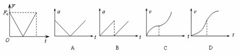 某物体在多个力的作用下处于静止状态,如果使其中某个力F方向保持不变,而大小先由F0随时间均匀减小到零,然后又从零随时间均匀增大到F0,在这个过程中其余各力均保持不变,在下列各图中,能正确描述该过程中物体的加速a或速度v的变化情况的是( )