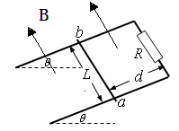 的金属棒ab放在两导轨上,与导轨垂直并接触良好,距离导轨最上端d=4m,整个装置处于匀强磁场中,磁场的方向垂直导轨平面向上.