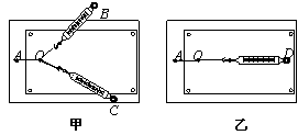 (2)(4分)在验证力的平行四边形定则实验中,如图甲、乙所示,某同学分别用弹簧秤将橡皮条的结点拉到同一位置O,记下甲图中弹簧秤的拉力:F1=2.0N、F2=2.6N;乙图中弹簧秤的拉力:F/=3.6N,力的方向分别用虚线OB、OC和OD表示.请你按图中的比例尺,在丙图中作出F1、F2 的合力与F/的图示.