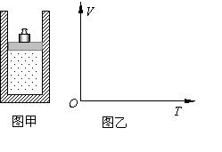 (2)如图甲所示,用面积为S的活塞在汽缸内封闭着一定质量的空气,活塞上放一砝码,活塞和砝码的总质量为m,现对汽缸缓缓加热使汽缸内的空气温度从TI升高到T2,且空气柱的高度增加了∆l, 已知加热时气体吸收的热量为Q,外界大气压强为p0,问此过程中被封闭气体的内能变化了多少?请在下面的图乙的V-T图上大致作出该过程的图象(包括在图象上标出过程的方向).
