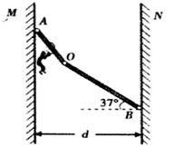 L1=5m,OB长为L2=10m。两堵竖直墙壁的间距d=11m。滑杆A