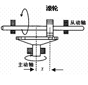 如图所示,为一种“滚轮--平盘无极变速器”的示意图,它由固定于主动轴上的平盘和可随从动轴移动的圆柱形滚轮组成。由于摩擦的作用,当平盘转动时,滚轮就会跟随转动。如果认为滚轮不会打滑,那么主动轴转速n1、从动轴转速n2、滚轮半径r以及滚轮中心距离主动轴轴线的距离x之间的关系是( )
