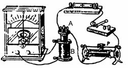 (3分)现将电池组、滑线变阻器、带铁芯的线圈A、线圈B、电流计及开关如下图连接,在开关闭合、线圈A放在线圈B中的情况下,某同学发现当他将滑线变阻器的滑动端P向右加速滑动时,电流计指针向左偏转。由此可以判断( )