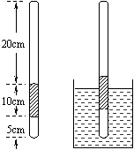 (12分)有人设计了一种测定某种物质与环境温度关系的测温仪,其结构非常简单(如图所示)。两端封闭、粗细均匀的竖直玻璃管内有一段长10cm的水银柱将管内气体分隔成上、下两部分,上部分气柱长20cm,压强为50cmHg,下部分气柱长5cm。今将管子下部分插入待测温度的液体中(上部分仍在原环境中),水银柱向上移动2cm后稳定不动。已知环境温度为27℃,上部分气柱的温度始终与外部环境温度保持一致。求稳定后: