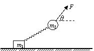 如图所示,质量分别为m1、m2的两个物体通过轻弹簧连接,在力F的作用下一起沿水平方向做匀加速直线运动(m1在光滑地面上,m2在空中).已知力F与水平方向的夹角为θ.则m1的加速度大小为