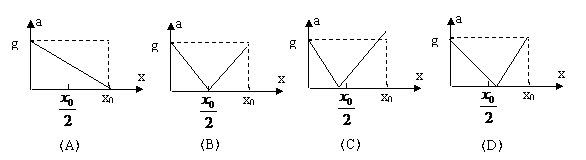 15.如图所示,一根轻质弹簧下端被固定后竖直地立在水平地面上,小物块自弹簧正上方某处开始自由下落,落到弹簧上并将弹簧压缩,若已知弹簧的最大压缩量为x0,则在弹簧被压缩的过程中,小物块的加速度大小a随弹簧压缩量x的变化下列那幅图像能够正确反映(图中g为重力加速的大小)。