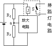 光敏电阻是由半导体材料制成的,受到光照射时,其导电性能显著增强。将其与电磁继电器组合,就可用来自动控制街道路灯的开与关。图中所示是自动控制路灯的工作原理图,当光照暗到一定程度时,路灯能点亮。电阻R1、R2之一为光敏电阻,另一为定值电阻。当放大电路的输入a端电压升高至某一值时,使经过继电器J的电流增大到受继电器J控制的电键S闭合,路灯就点亮。则_______是光敏电阻,若要提高电路的灵敏度,则_______(增大或减小)定值电阻的阻值。