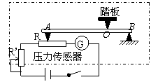 29.(6分)有一种测量人体重的电子秤,其原理图如图中的虚线所示,它主要由三部分构成:踏板和压力杠杆ABO、压力传感器R(一个阻值可随压力大小而变化的电阻器)、显示体重的仪表G(其实质是电流表)。R'为调零电阻,其中AO:BO=5:1。已知压力传感器的电阻与其所受压力的关系R=300-0.6F.设踏板的杠杆组件的质量不计,电源电动势为4V,内阻2Ω.标准状态下R'调到=20Ω则:
