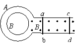 (D)导线ab加速向左运动,B中产生顺时针方向的电流