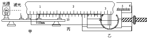 (1)在《用双缝干涉测光的波长》实验中,将双缝干涉实验仪按照要求安装在光具座上,如图甲所示。从仪器注明的规格可知,像屏与双缝屏间的距离l=600mm,选用缝间距d=0.20mm的双缝屏。调整实验装置,观察到双缝干涉条纹。