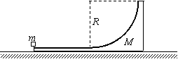 23.(18分)质量为M的滑块由水平轨道和竖直平面内的四分之一光滑圆弧轨道组成,放在光滑的水平面上。质量为m的物块从圆弧轨道的最高点由静止开始滑下,以速度v从滑块的水平轨道的左端滑出,如图所示。已知M:m=3:1,物块与水平轨道之间的动摩擦因数为µ,圆弧轨道的半径为R。