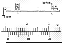 (8分)如图所示是某同学探究小车加速度与力的关系的实验装置,他将光电门固定在水平轨道上的B点,用不同重物通过细线拉同一小车,每次小车都从同一位置A由静止释放.