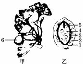 (1)在乙图中[1][2][3]合称为 ,[4]是 由于桃的种子外面有 ,