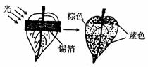 右图表示德国科学家萨克斯的实验。将绿色的叶片放在暗处几小时后,经脱色、漂洗再用碘液处理,结果遮光部分不变蓝,曝光部分变蓝。本实验说明