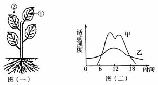 (1)从光合作用的过程考虑,图(一)中的①、②代表的物质依次是 。