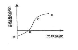 D、整段曲线表示,随着光照强度递增光合作用递增,呼吸作用停止