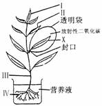 一株植物经过如下处理:把叶片X(见右图)暴露在为放射性同位素所标记的CO2中数小时,然后将组织Ⅲ和Ⅳ分别从茎和根上切下来,叶片Ⅰ和Ⅱ也被切下来。你预测会在哪些组织中测出放射性标记的有机物?
