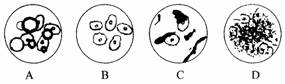 69、在低倍显微镜下观察人的口腔上皮细胞时,甲、乙、丙、丁四位同学分别在视野中看到的物像如下图所示。其中由于盖盖玻片错误导致的图像是: