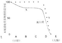 右图是淀粉、脂肪和蛋白质在消化道中各部位(依次为A、B、C、D、E)被消化程度。
