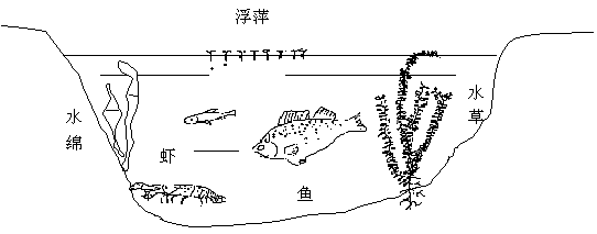 (4) 如向池塘中投放一些大黑鱼(肉食性),则池塘中小鱼的数量将会________,写出这条食物链______________________________________。 (3分)